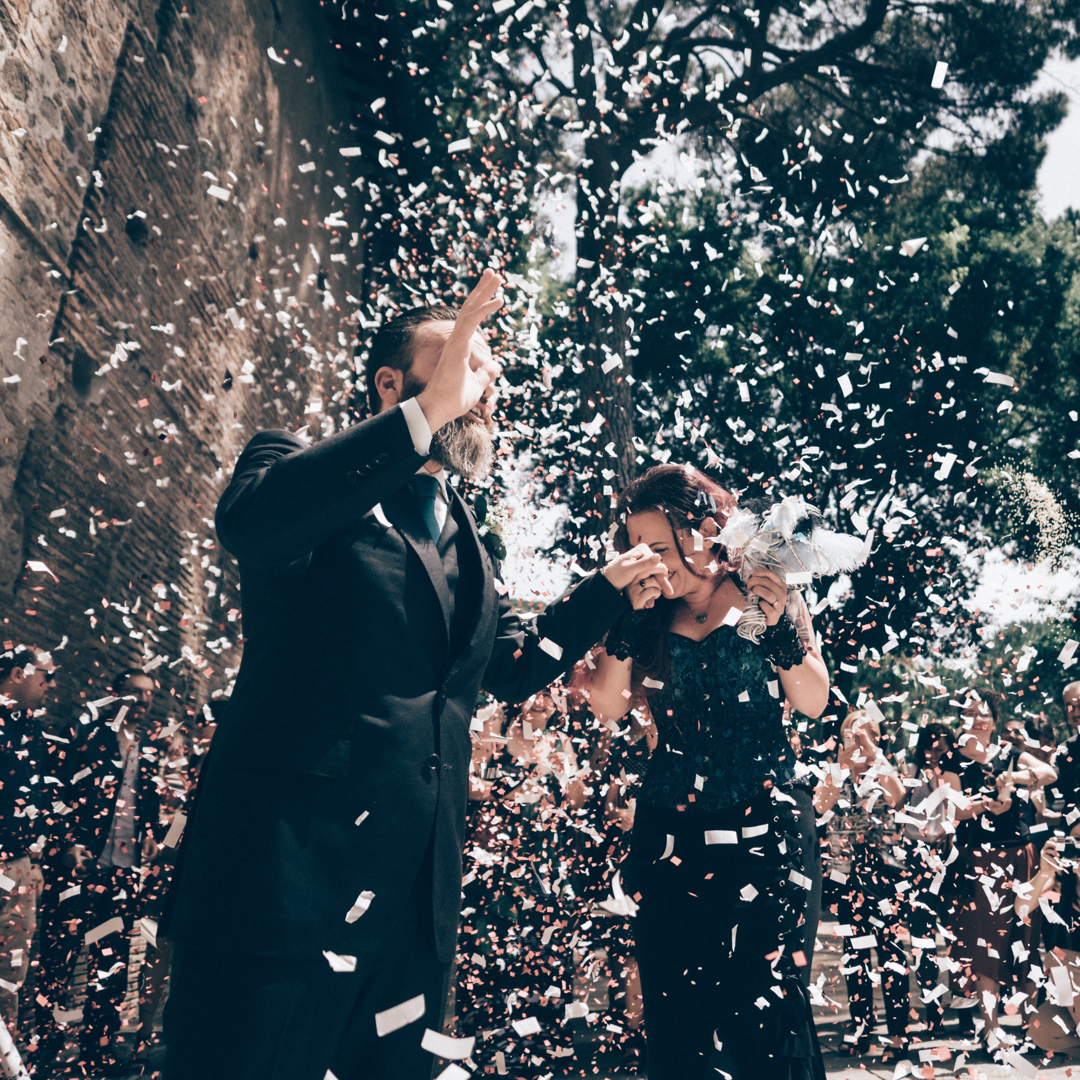 • Bride holding a single-tier black sheer veil with silver sparkles in a classic room by Nicola Xu Atelier. Close-up of black mesh veil with fine silver glitter delicately covering the face by Nicola Xu Atelier.